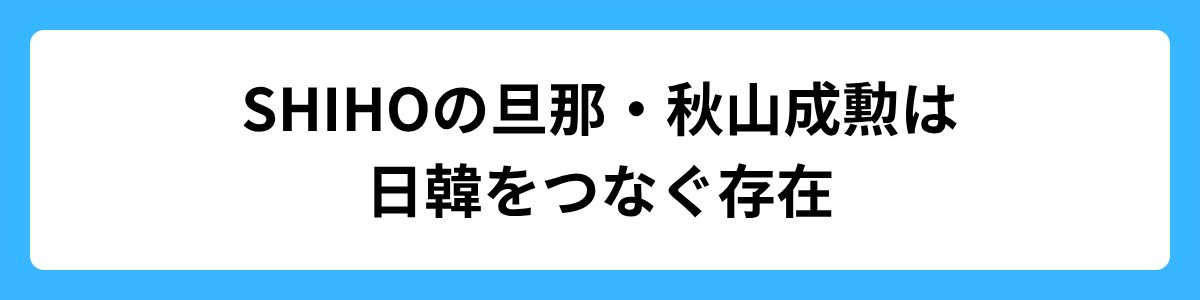 この記事では、SHIHOさんの夫である秋山成勲(あきやま よしひろ)さんについて、彼の韓国との関わりや家族構成、芸能活動まで詳しくご紹介します。